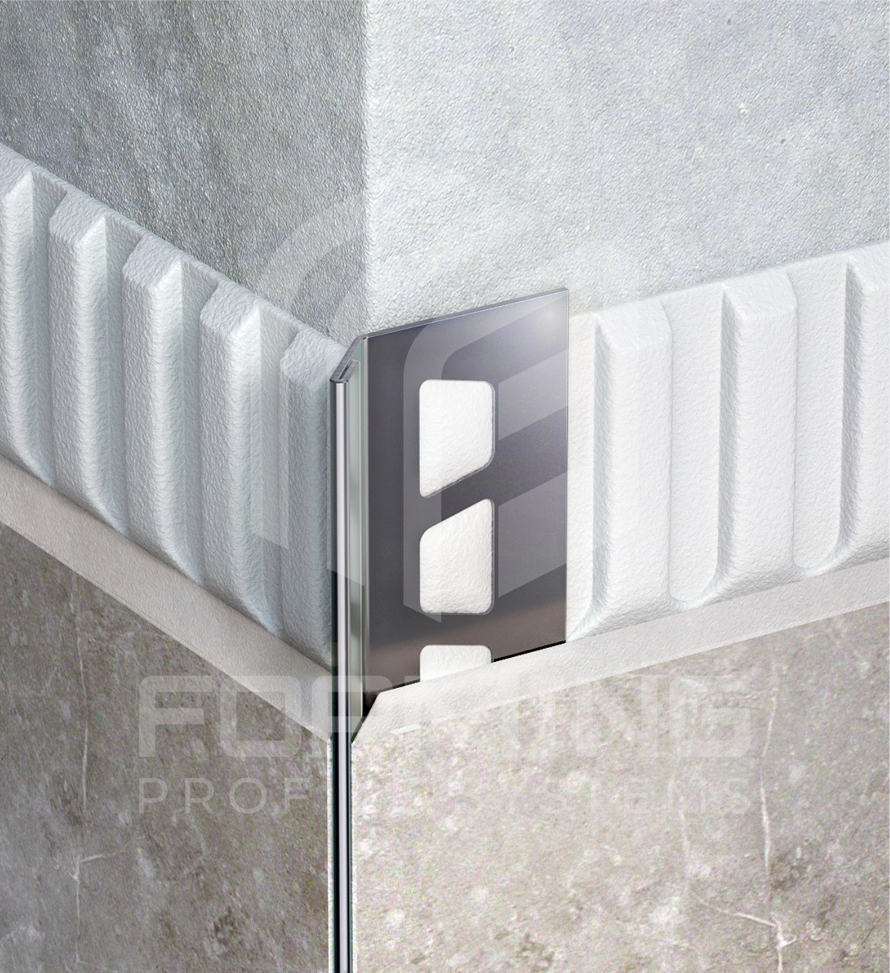Возможно использование в качестве разделительного элемента, с узкой видимой частью около 3 мм, при формировании напольных и стеновых элементов облицовки.