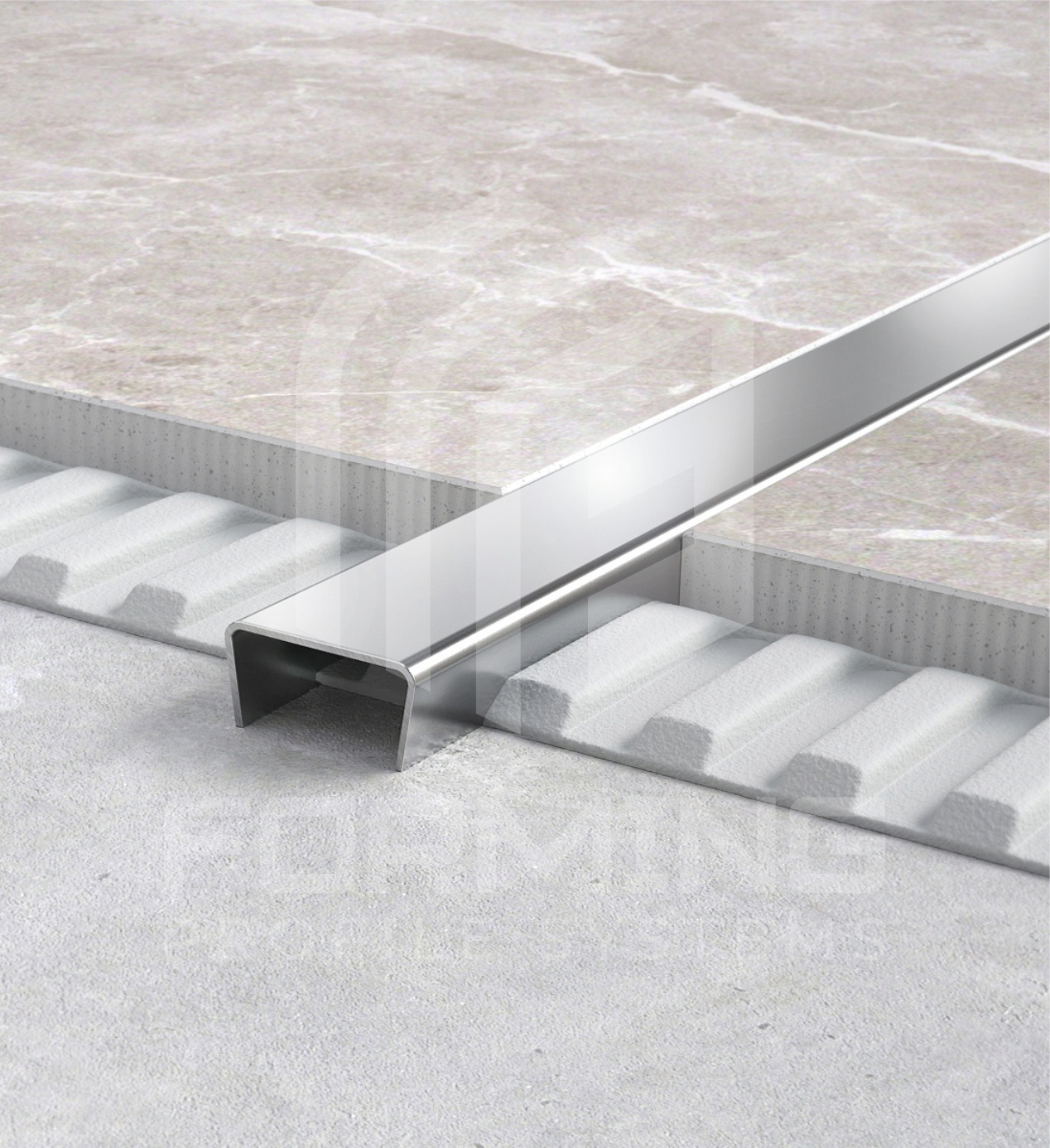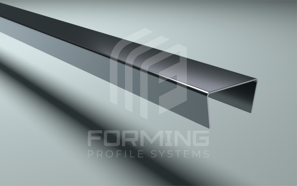 П-образная вставка-раскладка со скошенными боковыми полками для кафельной плитки из нержавеющей стали 0,8 мм в стандартном исполнении.