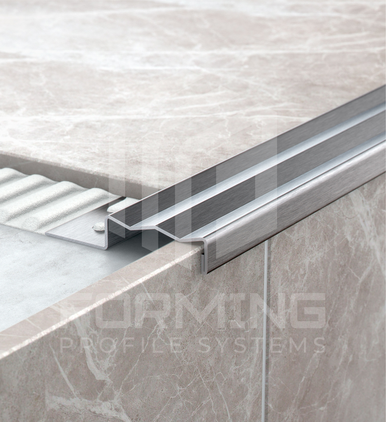 Профиль предназначен для защиты кромки ступени, либо любого другого углового элемента отделки помещения от износа или механических повреждений.