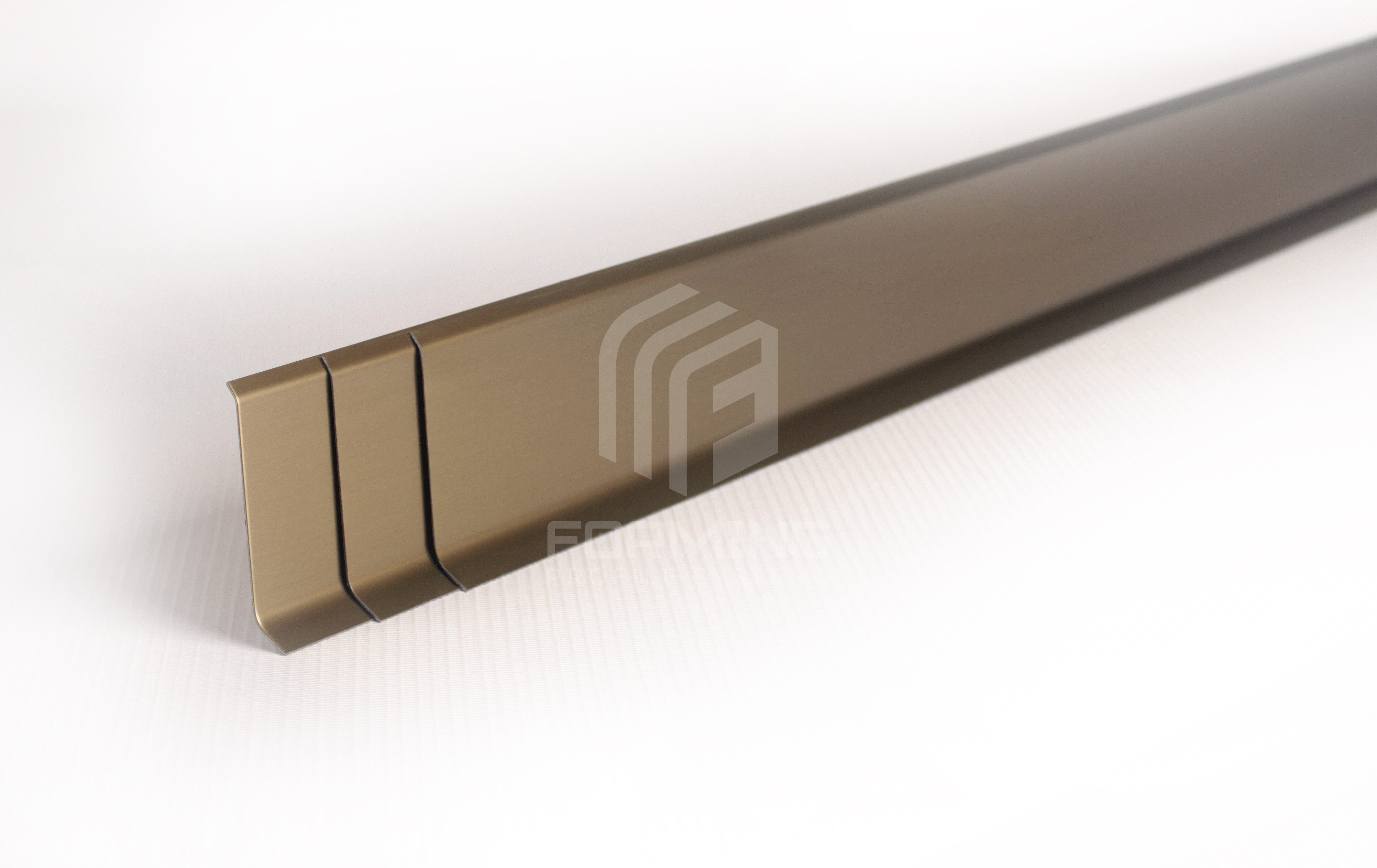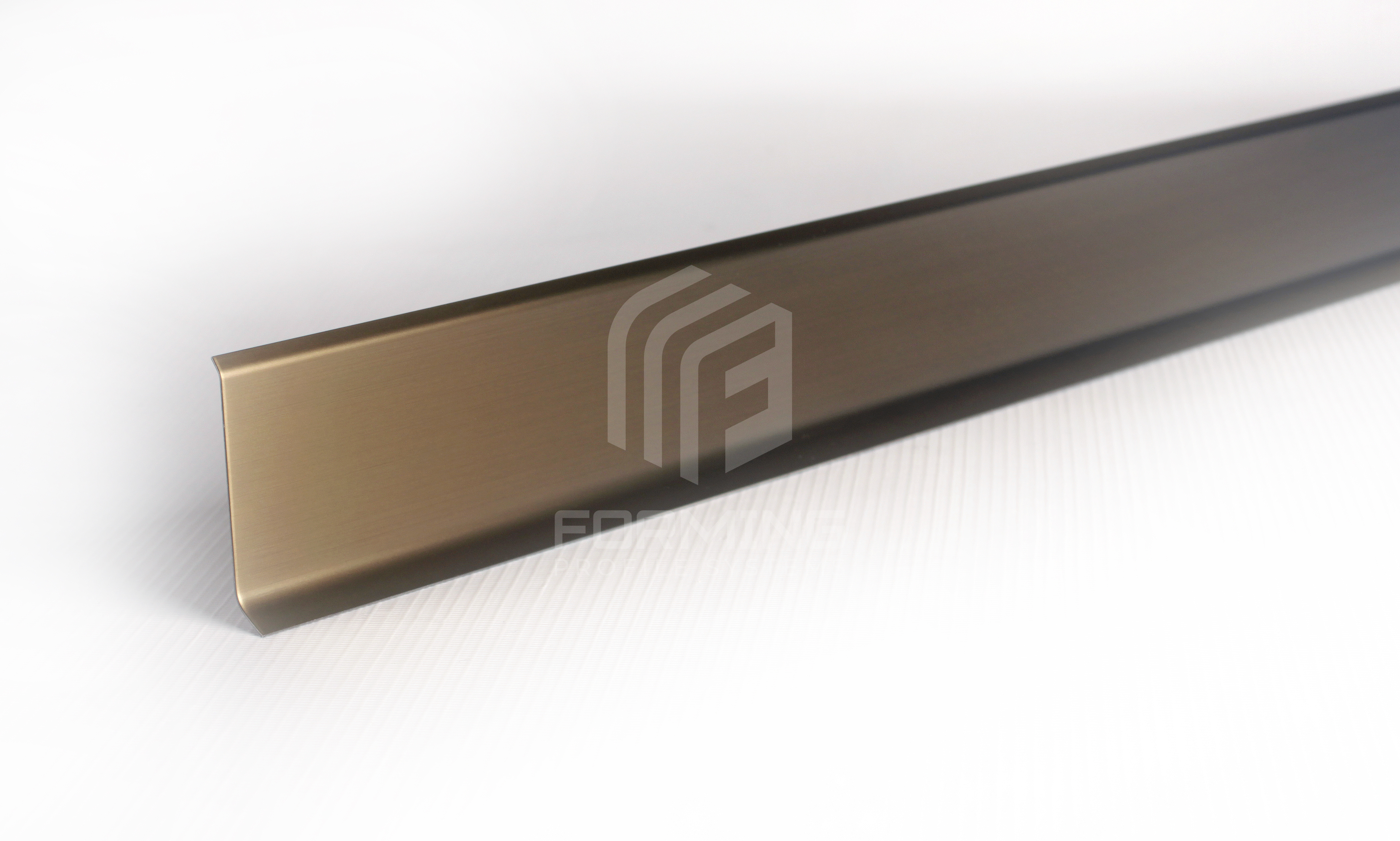 Декоративный L-образный профиль с верхней полкой под 450 и радиусной ножкой, из нержавеющей стали 0,8 мм. Используется, как плинтус для придания завершенного вида помещениям отделанным плиткой, керамогранитом, стеновыми панелями и другими материалами.