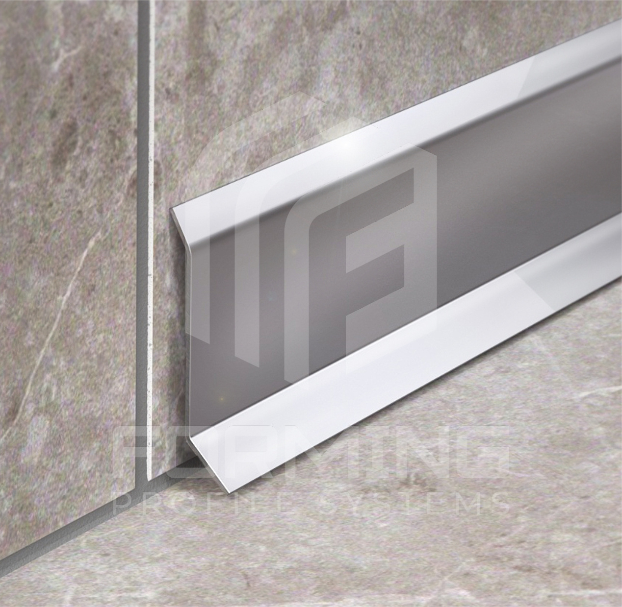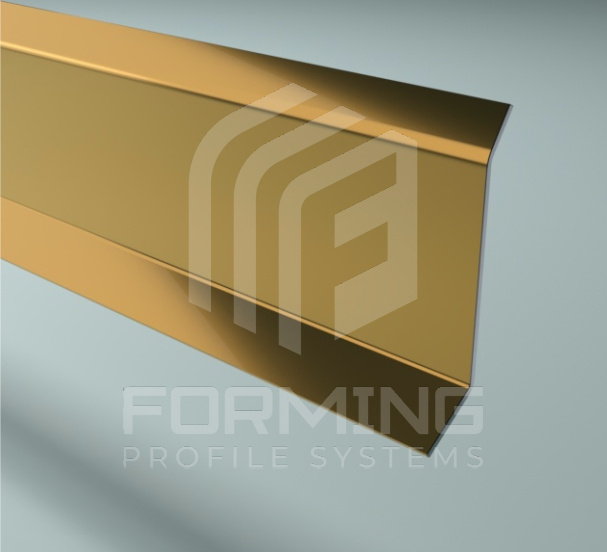 Декоративный L-образный профиль с верхней полкой и прямой ножкой под углом 450 из нержавеющей стали 0,8 мм в стандартном исполнении. Используется, как плинтус для придания завершенного вида помещениям отделанным плиткой, керамогранитом, стеновыми панелями и другими материалами.