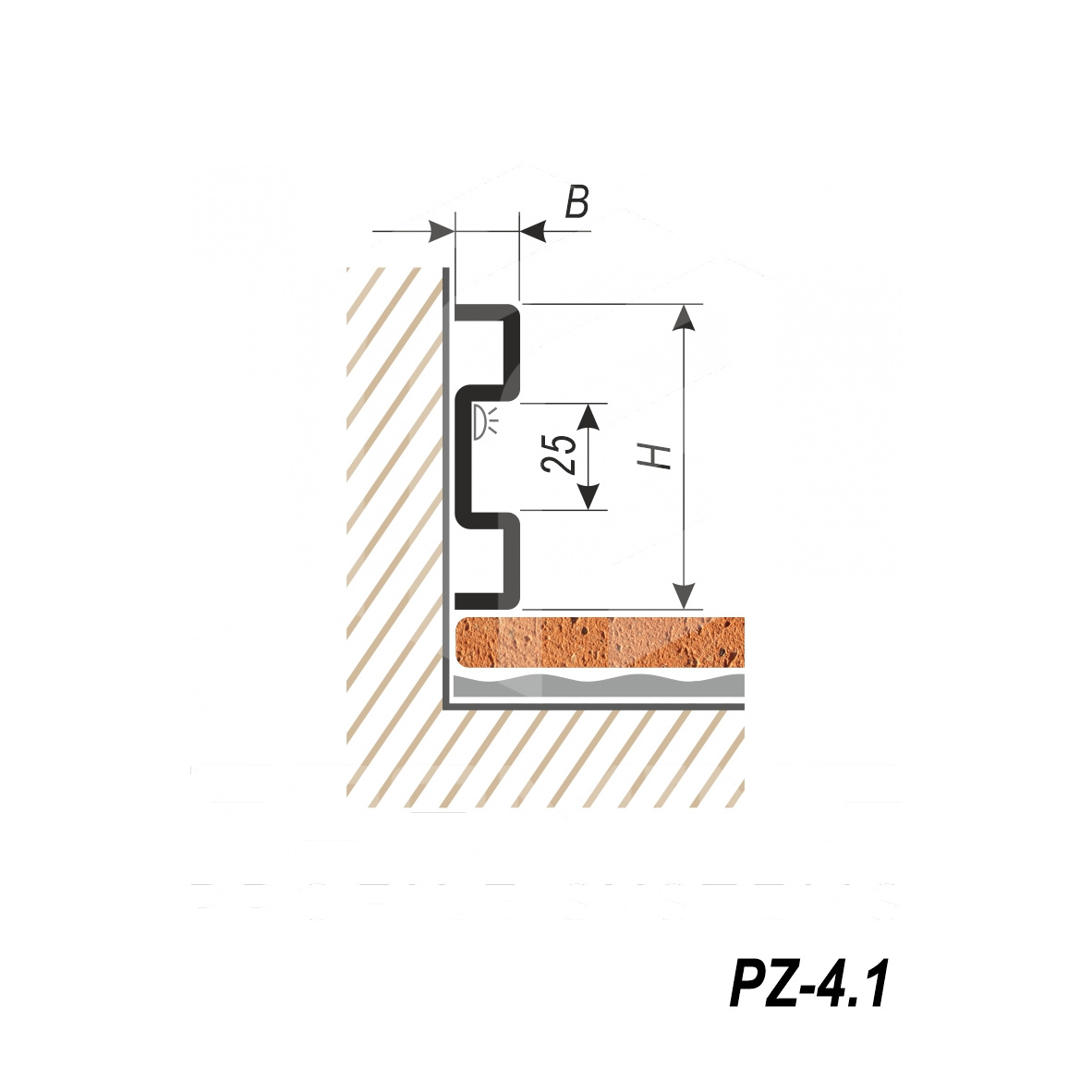 Плинтус PZ-4.1 имеет возможность скрытого монтажа подсветки.