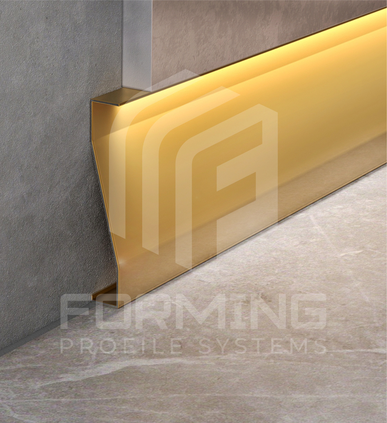 Теневой плинтус PS-2 имеет возможность скрытого монтажа подсветки (эффект парящей стены).