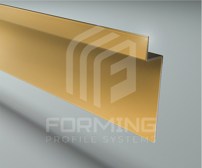 Теневой декоративный профиль из нержавеющей стали 0,8 мм в стандартном исполнении. Используется, как плинтус для придания завершенного вида помещениям отделанным плиткой, керамогранитом, стеновыми панелями и другими материалами.