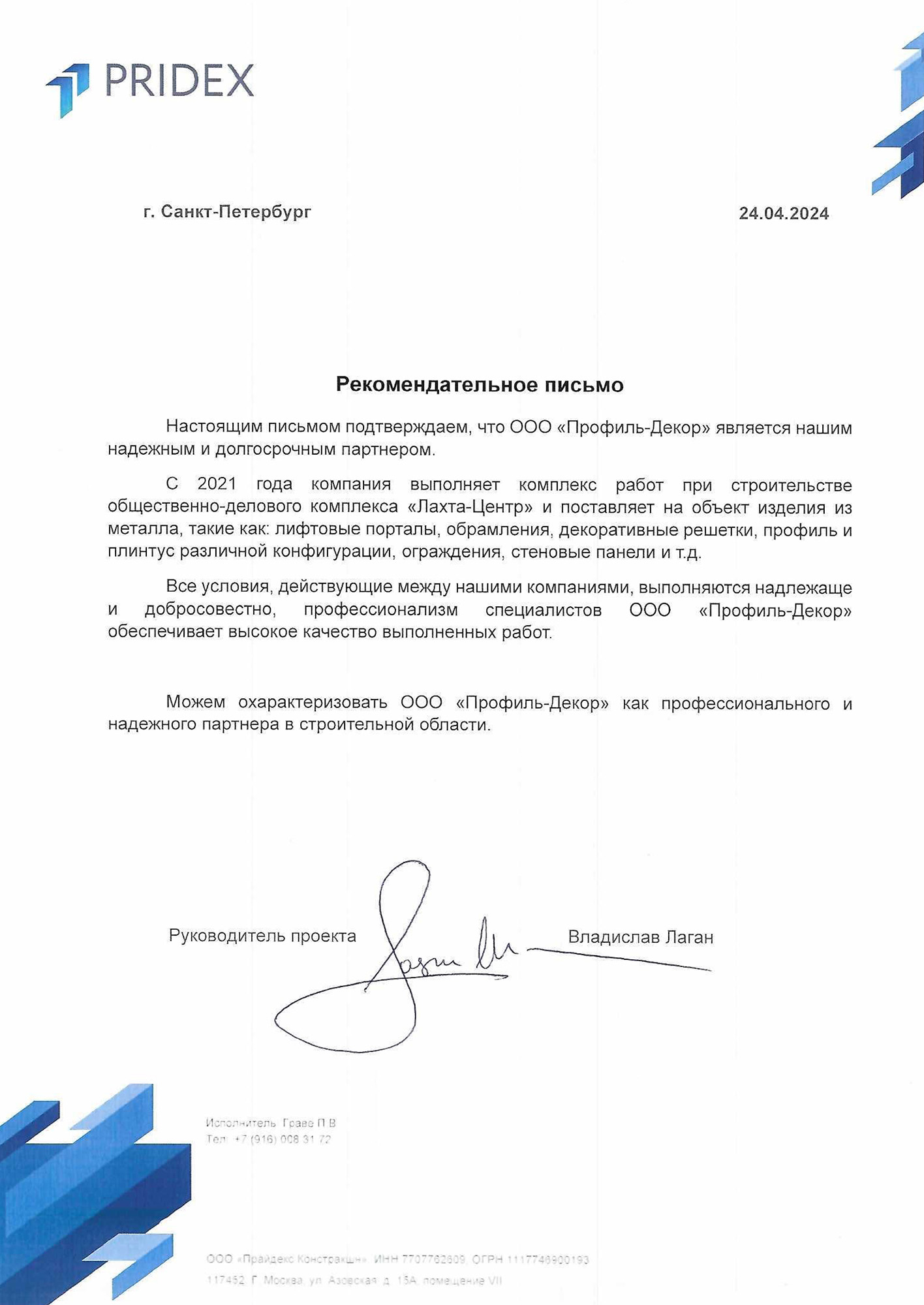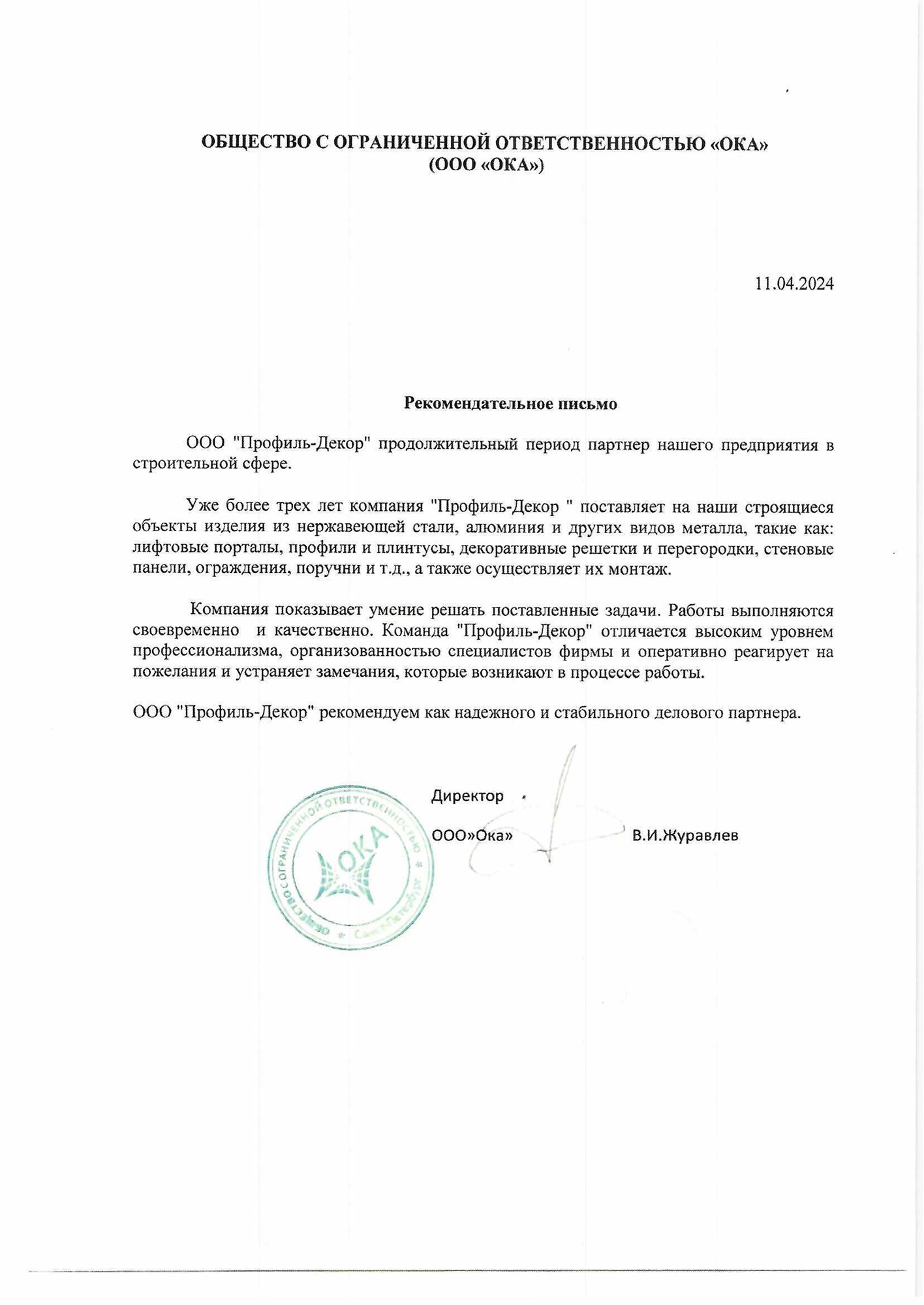 Настоящим письмом подтверждаем, что ООО «Профиль-Декор» является нашим надежным и долгосрочным партнером.