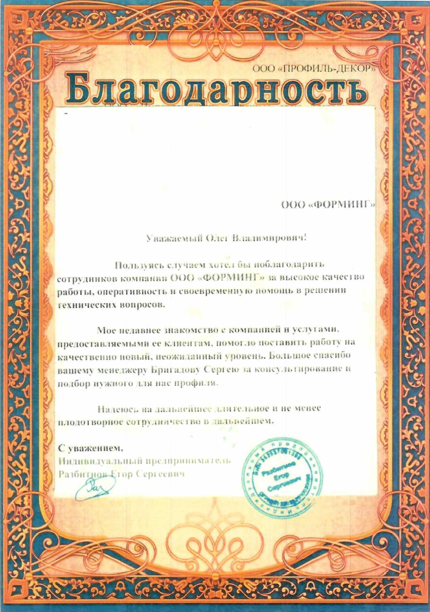 Мы считаем, что с ООО «Профиль-Декор» можно эффективно и успешно сотрудничать.