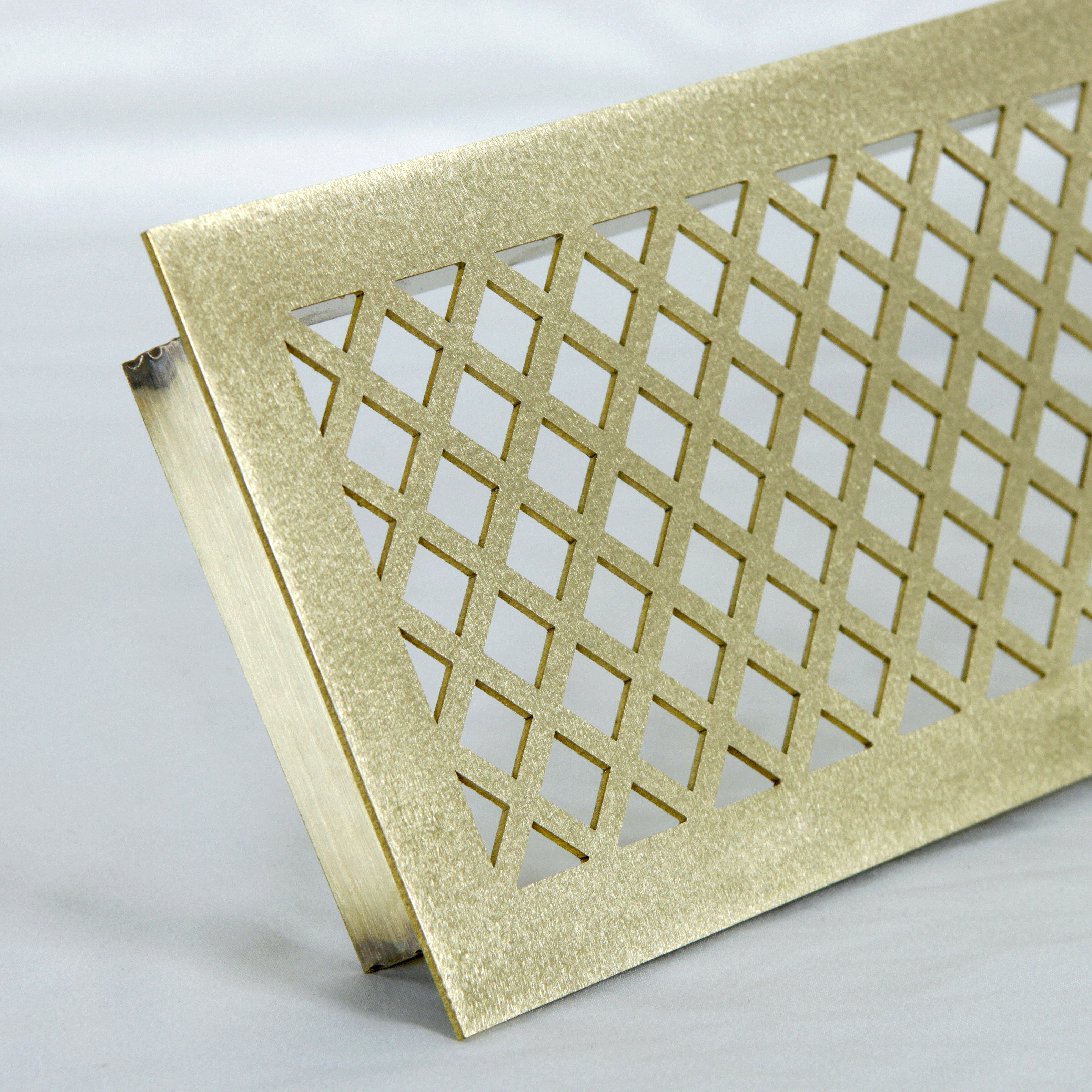 Натуральная латунь - материал, подверженный сильному атмосферному окислению. Если вы хотите сохранить первоначальный вид решётки, рекомендуется обработать её лаком, чтобы предотвратить окисление и изменение цвета в местах прямого воздействия. Если же вы хотите добиться эффекта старины, оставьте поверхность без покрытия, и со временем на поверхности латуни образуется патина, придающая декоративным решёткам благородный винтажный вид.