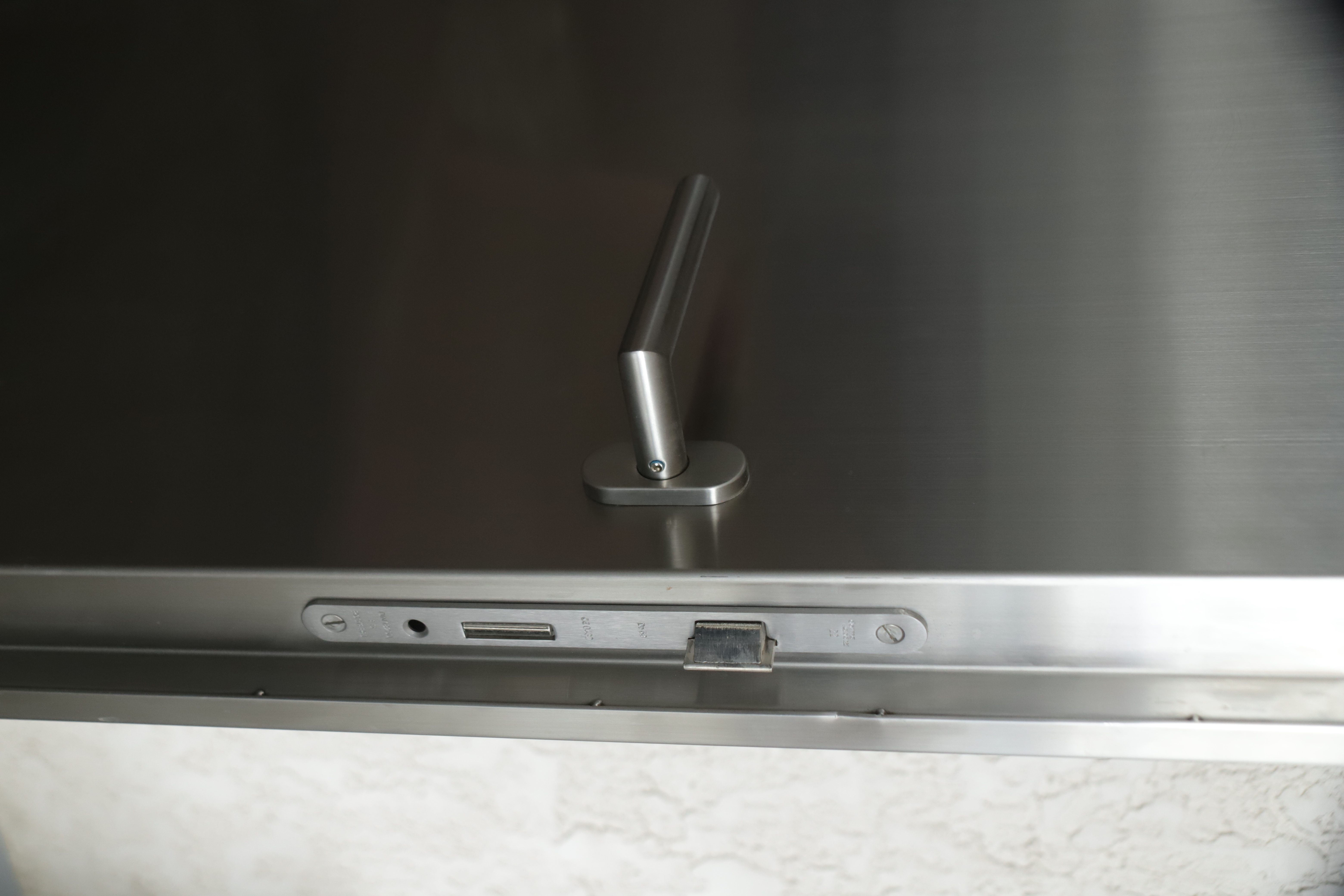 Нержавеющая сталь марки 304 толщиной 1,5 мм с шлифованной поверхностью придающей нашим дверям благородный вид