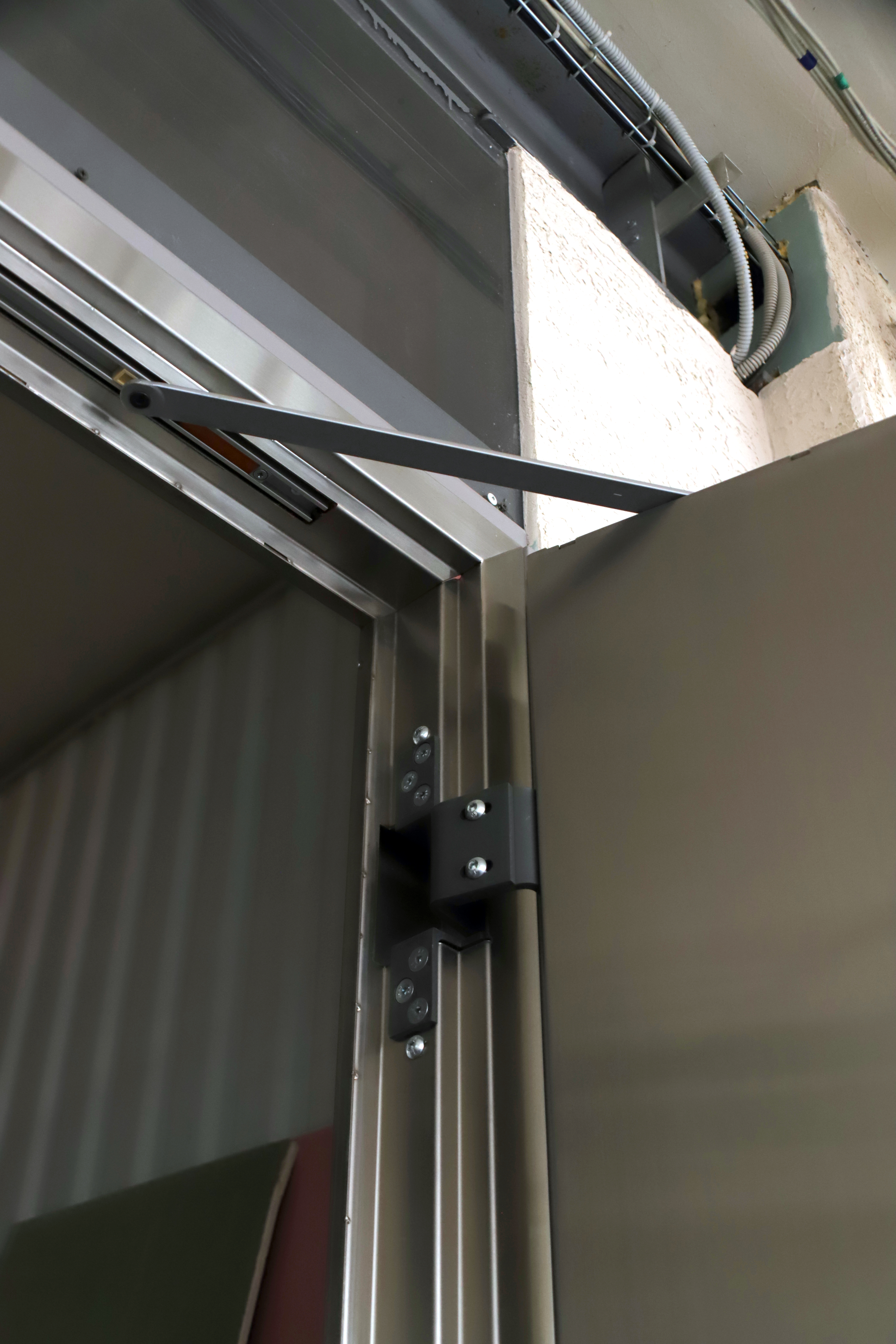 Двери состоят из металлической рамы, коробчатого стального полотна и негорючей изоляции, а термическая уплотнительная лента обеспечивает герметичность дверей в закрытом состоянии, предотвращая проникновение дыма и огня